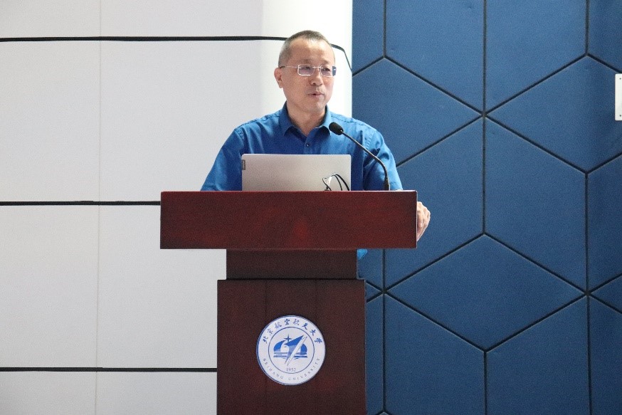 吕广宏院长在开学典礼上做了学院发展报告,从学科历史沿革、学科定位与发展现状、物理教学与人才培养、学科未来展望四个方面做了全面介绍。他勉励全体新同学,共同努力建设面向国际科学前沿,服务国家重大战略需求,强化理工融合,彰显航空航天特色的一流物理学科。随后,吕广宏院长为2021级本科生班主任杜轶老师颁发了聘书。